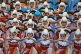 一群武術(shù)小羊亮相廣州國際體育演藝中心,為亞運(yùn)男籃比賽中韓之戰(zhàn)暖場(chǎng)。