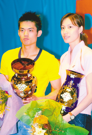 林丹、謝杏芳這對(duì)羽壇情侶前天在球迷為林丹舉辦的生日晚會(huì)上表示,他倆將在2008年奧運(yùn)會(huì)之后考慮婚事,林丹同時(shí)表示,自己可能將在2012年奧運(yùn)會(huì)后才會(huì)退役,而謝杏芳則基本確定將會(huì)在北京奧運(yùn)會(huì)后脫下國(guó)家隊(duì)?wèi)?zhàn)袍。