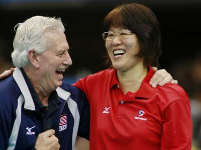 終場哨聲響起,美國隊相擁而慶,郎平從教練席上緩緩起身,那一刻,郎平如同卸下千斤重?fù)?dān),心情舒暢,激情蕩漾。自“鐵榔頭”2005年初接過美國隊的教鞭之后,前進(jìn)的道路并不是一帆風(fēng)順。由于美國隊沒有很長的集訓(xùn)時間,加上部分老隊員沒有入隊,美國隊在過去兩年鮮有佳績。去年的世界錦標(biāo)賽,美國隊名列第九。如今,沒有人懷疑美國隊的實力,更沒有人質(zhì)疑郎平的執(zhí)教能力,每場比賽郎平的排兵布陣都有神來之筆。