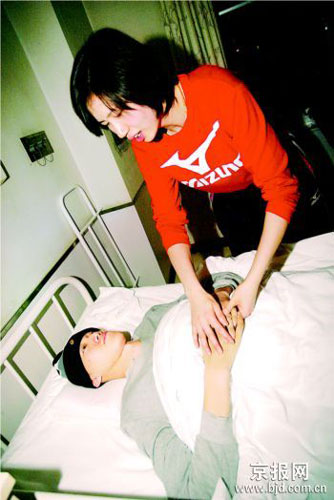 前幾天,周蘇紅從男排國(guó)家隊(duì)把湯淼的一些衣物取回時(shí),偶然看到了湯淼在紙盒上寫的字,觸景生情,她哭著說:“我看到了他親筆寫的字,字寫得雖然不是很好看,但卻令我很感動(dòng)。自從他受重傷以來,每天我訓(xùn)練完了回到房間,都不知道自己該干什么,一空閑下來,我就控制不住地胡思亂想,為‘錘錘’揪著心(湯淼的小名)。可我也總在想,現(xiàn)在的醫(yī)療水平那么高,他又那么堅(jiān)強(qiáng),還有那么多人關(guān)心他、鼓勵(lì)他,我想湯淼重新站起來只是時(shí)間問題。實(shí)際上錘錘剛受傷的時(shí)候,對(duì)我打擊最大,現(xiàn)在那么困難的時(shí)候我倆都挺過來了,現(xiàn)在每天看到他一點(diǎn)點(diǎn)地恢復(fù),我對(duì)他越來越有信心!