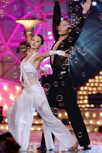 比賽一上場(chǎng),戴菲菲就仿佛回到了當(dāng)年的競(jìng)技場(chǎng),忘情地大舞帶操,一時(shí)間滿臺(tái)飄帶,看得臺(tái)下的觀眾美不勝收,在中段經(jīng)過了男舞伴倫巴的“過渡”,最后一段戴菲菲繼續(xù)演練看家本領(lǐng),最后以一個(gè)“一字開”的標(biāo)準(zhǔn)體操動(dòng)作結(jié)束了整套舞蹈。結(jié)果幾位評(píng)審一致認(rèn)為,戴菲菲唯美的帶操完全壓過了倫巴的風(fēng)頭,正統(tǒng)國標(biāo)舞的動(dòng)作在整套舞蹈中反而是蹤影難尋,并且戴菲菲過于陶醉在自己的體操舞步中,使得男舞伴完全淪為了一片“綠葉”。好在評(píng)委們?cè)诖蚍稚隙歼算客氣,最終戴菲菲以并列第三名的身份順利晉級(jí)了復(fù)賽。