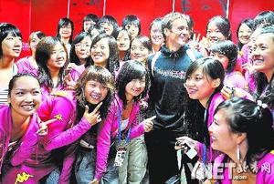 在雨中給球迷簽完名后,羅布雷多又來到了中網(wǎng)啦啦隊(duì)的休息室,西班牙帥哥的出現(xiàn)立刻令這個(gè)原本安靜的房間喧鬧了起來。女孩們你一言我一語地爭(zhēng)相向這位隨和的網(wǎng)球明星問好,其中不僅有中文,還夾雜著英語和西班牙語。在與所有的啦啦隊(duì)員合完影之后,羅布雷多還不忘用中文向這些在賽場(chǎng)上給她加油的女孩們說一聲“謝謝”。后來賽事工作人員告訴記者,見啦啦隊(duì)是羅布雷多自己主動(dòng)提出來的,就是為了向女孩們表示感謝。