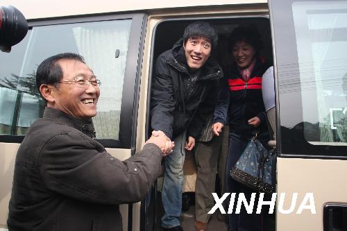 12月3日,劉翔(中)登上汽車(chē)準(zhǔn)備出發(fā)。