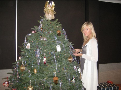 莎拉波娃圣誕樹旁留倩影 金發(fā)披肩楚楚動(dòng)人(圖)