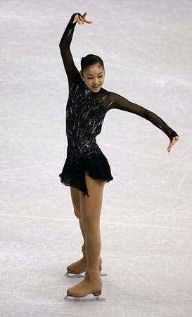 這樣,金妍兒再次刷新了自己在上月舉行的四大洲錦標(biāo)賽上創(chuàng)下的72.24分短節(jié)目歷史最高成績。金妍兒伴隨著《死亡之舞》的優(yōu)美旋律進(jìn)行了幻想般的表演,表演結(jié)束后,全場觀眾都起立為她鼓掌。