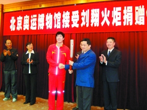 北京奧運(yùn)博物館籌備辦公室主任侯明上午在接受本報(bào)記者電話采訪時(shí)介紹,劉翔親自參加了今天的捐贈(zèng)儀式,他表示:奧運(yùn)會(huì)在中國(guó)舉辦意義重大,而我能成為中國(guó)第一棒火炬接力手,祖國(guó)和人民給了我極大榮譽(yù)。劉翔坦言:北京奧運(yùn)會(huì)已圓滿(mǎn)結(jié)束,今天我把這枚火炬捐出來(lái),說(shuō)實(shí)話心里有一絲不舍,但是為了弘揚(yáng)奧運(yùn)精神,我決定把它鄭重交給北京奧運(yùn)博物館,讓它陳列在博物館中,讓更多人看到它,看到北京奧運(yùn)會(huì)的圓滿(mǎn)成功,看到偉大祖國(guó)的日益強(qiáng)盛。