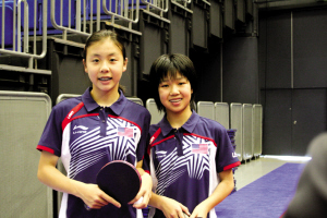 在昨天的訓(xùn)練時,美國雙姝在球館的最邊一張球臺上對練,場外十分靦腆,但是場上倒有板有眼,她們自己操英語交流,但是與記者交流時還能夠用中文。