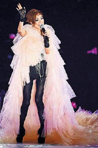 一開場(chǎng),Sammi穿紅黑軍裝、頭戴夸張帽飾,站在噴火飛碟上空降舞臺(tái),以舞曲《天衣無(wú)縫》火速炒熱氣氛,10年沒在臺(tái)北開唱,她大展親民挑逗粉絲,頻問:“我的華語(yǔ)是不是進(jìn)步了?還有一點(diǎn)點(diǎn)臺(tái)味!、“我還是那么漂亮、fit(結(jié)實(shí))對(duì)吧?”接著她換上水鉆流蘇裝,連唱2首經(jīng)典抒情歌《承諾》、《值得》,將時(shí)光拉回剛來(lái)臺(tái)發(fā)片的1996年,全場(chǎng)螢光棒譜成一片粉紅海,氣氛感人。