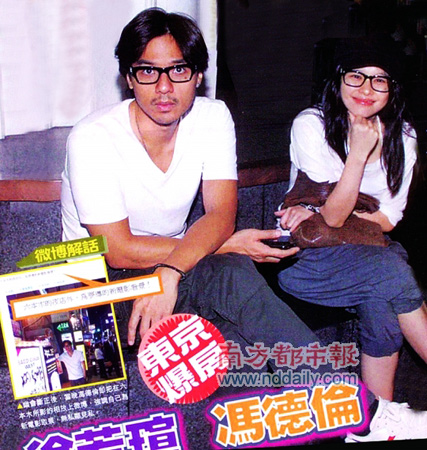 馮德倫與徐若瑄的緋聞傳了多時(shí),盡管多次被狗仔偷拍到“約會(huì)畫(huà)面”,兩位當(dāng)事人始終不肯承認(rèn)。這不,單單這個(gè)月,這對(duì)緋聞情侶就被拍到兩次秘密約會(huì),一次是月初馮德倫生日,徐若瑄專(zhuān)程空出檔期,從臺(tái)北飛至香港為男方慶生;第二次是日前,兩人以一身白衣灰褲白球鞋的情侶裝扮在東京露面,被狗仔撞破仍舊不松口,男方看著從天而降的相機(jī)鏡頭怒火大盛卻無(wú)處發(fā)泄,不肯說(shuō)太多,只稱“沒(méi)話說(shuō)”;女方則稍微鎮(zhèn)定些,以一臉尷尬式甜笑面對(duì)鏡頭,大方回應(yīng)稱與馮德倫只是巧遇,順便吃飯而已。然而,問(wèn)及何時(shí)公開(kāi)關(guān)系,徐若瑄表示:“真的要認(rèn)識(shí)他的為人,需要時(shí)間和空間才可以回答!眱扇岁P(guān)系呼之欲出。