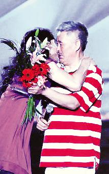 前日一場演出中,趙本山穿條紋T恤亮相,秀起二胡技藝,還拉馮小剛一起上臺。這時一個穿著粉嫩短裙的美眉沖上臺來為趙本山獻花,還湊上前去接吻,不過趙本山看上去相當不愿意……轉過身來觀眾們才認出“女粉絲”是扮女裝的小沈陽,引來一場哄笑。(東魚)