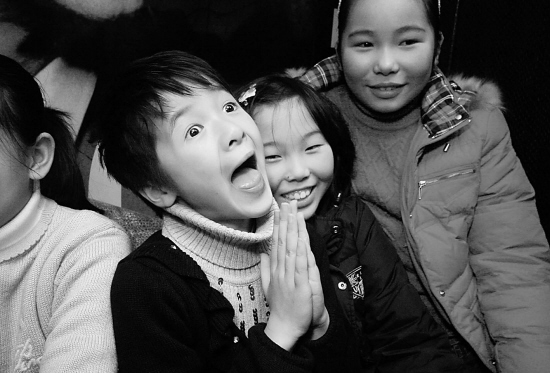 記者就坐在徐嬌一家三口前面一排,大銀幕上的徐嬌在那里哭在那里笑,看電影的徐嬌臉上是什么表情呢?記者回頭發(fā)現(xiàn),她看得十分認(rèn)真,笑的時(shí)候一起笑,哭的時(shí)候卻不哭。她說,已經(jīng)看了很多遍了,都麻木了。要十歲的小朋友哭可不是件容易的事,有好幾場哭戲,演的時(shí)候都哭不出來,媽媽只能擰她,疼得她眼淚一下就下來了。
