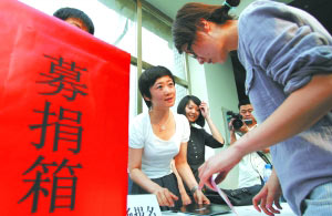 繼上海和廣州兩站義映后,賈樟柯攜新作《二十四城記》來(lái)到母校北京電影學(xué)院進(jìn)行了第三場(chǎng)放映,和主演趙濤一起再次為四城市義映活動(dòng)親力親為。本場(chǎng)放映共籌得善款超過(guò)3萬(wàn)元,人均68元。北京的觀眾對(duì)于這次義映也表現(xiàn)出了極大的熱情,除了之前預(yù)訂的300席之外,現(xiàn)場(chǎng)買票的觀眾也多達(dá)近200人,不少觀眾更是提前兩個(gè)多小時(shí)便來(lái)到現(xiàn)場(chǎng),其中有五位觀眾在每人捐出100元購(gòu)買電影票之后,又再次各自掏出500元,表示支持本次義映活動(dòng),愿意為災(zāi)區(qū)文化設(shè)施重建獻(xiàn)出愛(ài)心;一位最早到達(dá)的觀眾還主動(dòng)提出在現(xiàn)場(chǎng)擔(dān)任義務(wù)售票員的工作;而不少恰巧路過(guò)的行人在了解本次義映活動(dòng)的情況之后,更是立刻買票表示支持。觀眾的熱情令劇組和本報(bào)工作人員十分感動(dòng),在影片放映前,賈樟柯站在臺(tái)上向四百多位觀眾深深鞠躬,表達(dá)對(duì)大家的謝意。