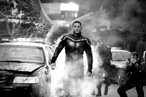如果你帶著對好萊塢以往銀幕上的“超人”印象來與漢考克對比,那么一定會讓你大跌眼鏡,因為漢考克的出場不但邋遢得像一個流浪漢,他還是一個連飛行時都提著酒瓶子的十足的酒鬼,以及一個看到美女就會調(diào)戲一番的“流氓”。當然你也不要以為他在飛行時有多么逍遙,因為他總是會碰到一些鳥類和飛機的“撞擊”,而且他的起飛和落地完全沒有以往“超人”們固定的POSE,在行俠仗義時還總是給公共設施帶來高達900萬美金經(jīng)濟損失的破壞。