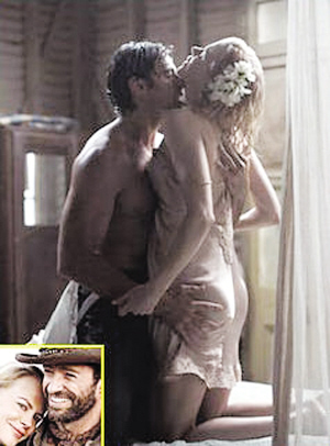 妮可·基德曼與休·杰克曼于新片《澳大利亞》中的床上纏綿照曝光,只見赤裸上身的休與身穿絲質(zhì)貼身睡衣的妮可跪在床上相擁,妮可陶醉地閉上眼、仰著頭,讓休親吻她的頸部,場(chǎng)面非;鹄!休受訪時(shí)自言很喜歡《澳大利亞》導(dǎo)演巴茲·魯赫曼的作品,因?yàn)樗鼈兊闹黝}都是愛情打破世俗枷鎖,而他表示與妮可合作是超乎想象的美好體驗(yàn)。 小 魚