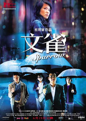 《文雀》不單看起來不像杜琪峰,連“聽”起來都讓人有這種感覺。杜琪峰以前寧愿用一些冷酷的臺詞來點(diǎn)燃靜默的鏡像,很少會在影片里用太多的音樂來烘托全片!段娜浮穭偤孟喾,臺詞少、音樂多,這一點(diǎn)倒也跟王家衛(wèi)有點(diǎn)像。在影片開始的一段里———任達(dá)華一句話都沒說,縫完衣服,一只小鳥飛了進(jìn)來,他釋放它之后小鳥又飛了回來,他笑了笑,就推單車出門了。直到任達(dá)華騎車穿過長長的街,到達(dá)茶餐廳和其他三個(gè)賊同伙見面之后,他才開口說話。