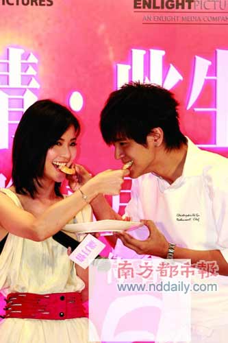 《歲月情》講述一個法國餐館大廚和一個少女之間的愛情故事,瞄準明年情人節(jié)。片中羅志祥扮演法國大廚,為營造氣氛,主辦方特意安排了他和阿Sa互相喂食大蝦的環(huán)節(jié)(如圖)。