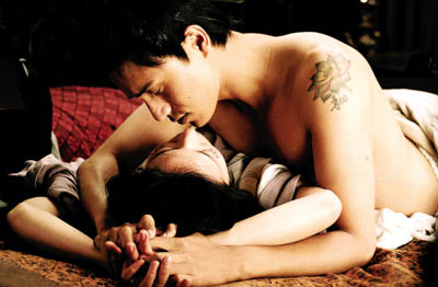 確定于9月26日上映的《畫皮》,昨日披露了陳坤和趙薇兩人的“激情照”。盡管此前在上海電影節(jié)期間曝光海量劇照的時候,記者已經(jīng)目睹過陳坤和周迅、趙薇的“激情照”,但是昨日披露的兩張照片的尺度還是讓人大跌眼鏡。照片中,陳坤和趙薇含情脈脈,而陳坤身上的文身也相當搶眼。