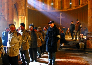 陸川:屠殺部分在片中會有長達20多分鐘,這部電影中群眾演員一次性動用最多的有2000多人,特技合成后會達到2萬多人,主要都是表現(xiàn)屠殺和戰(zhàn)爭場面的。