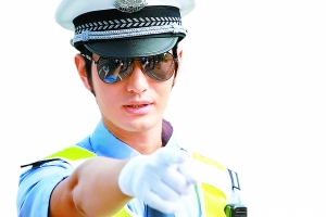 其實(shí)我覺得,現(xiàn)實(shí)生活中這是不太可能的。不過,倒也蠻有意思,因?yàn)榻痪娴耐浀。我在馬路上路過的時(shí)候,看到交警站在馬路中間指揮交通,尤其是站天安門廣場指揮交通,真的非常帥非常帥,所以有很多人喜歡警察這個(gè)職業(yè),包括我在內(nèi)。我相信很多人暗地里很喜歡警察,我心里就很可以接受這個(gè)。而且,我自己演了警察,我覺得穿著警服是很帥的。