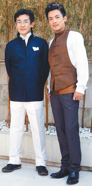 “海角七號”導(dǎo)演魏德圣(左)與男主角范逸臣為金馬試裝。