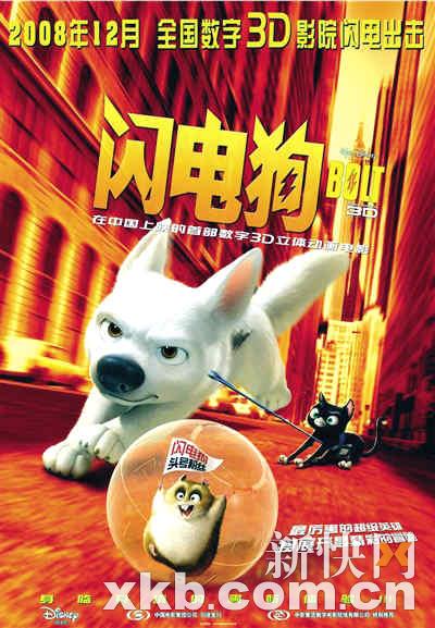 這部由全球動(dòng)畫巨頭迪士尼公司出品的動(dòng)畫片,講述的是一只名叫“波特”的可愛(ài)小狗在好萊塢片場(chǎng)飾演一只擁有超能力的閃電狗,波特不知道這是在拍電影,還以為自己真的具有超能力,直到它有一天來(lái)到了現(xiàn)實(shí)生活中,才發(fā)現(xiàn)自己只是一只普通的狗!堕W電狗》于11月21日在北美上映后,已經(jīng)取得了近1億美元的票房,并與《機(jī)器人總動(dòng)員》、《功夫熊貓》一起入圍了本年度金球獎(jiǎng)最佳動(dòng)畫片獎(jiǎng)提名。