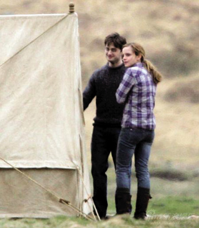 從片場照片以及小說情節(jié)推斷,丹尼爾與艾瑪拍攝的是他們逃亡在外、風(fēng)餐露宿的場面,“羅恩”魯伯特則因為某些原因暫時離開了他們!豆げㄌ7》全名為《哈利·波特與死亡圣器》,這一集電影將一分為二,上部于2010年11月19日上映,下部于2011年7月15日上映。