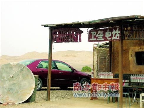 《無人區(qū)》的外景地是一個加油站兼小賣店,也做汽車修理生意。雖然這個外景地才搭建不足幾個月,但在黃沙狂風(fēng)的洗禮下,已經(jīng)活像一個存在了幾十年的破爛地方。連小賣店本身也是一個無頂?shù)男“浚慨?dāng)風(fēng)吹過,無盡的黃沙就朝人的頭頂撒下。