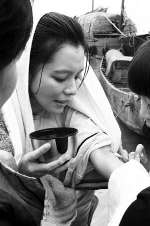 徐若瑄介紹,她扮演的黃蘇英是個美麗善良,而又堅韌不拔的漁家女,看到孩子的同學不慎掉入水中,她當即跳海救人。拍攝當天,海邊的天氣十分寒冷,天空下著雨,海風很大,導演為她的身體狀況擔心不已!拔視斡,但因為要和小演員配合,所以要在海水中一遍遍試戲,很耗體力,后來我的腿都在抽筋了!北M管劇組提前準備了充足的保暖和安全措施,上岸后的徐若王宣仍凍得瑟瑟發(fā)抖,幾盡虛脫狀態(tài),長時間無法緩解過來!瘘S笑宇