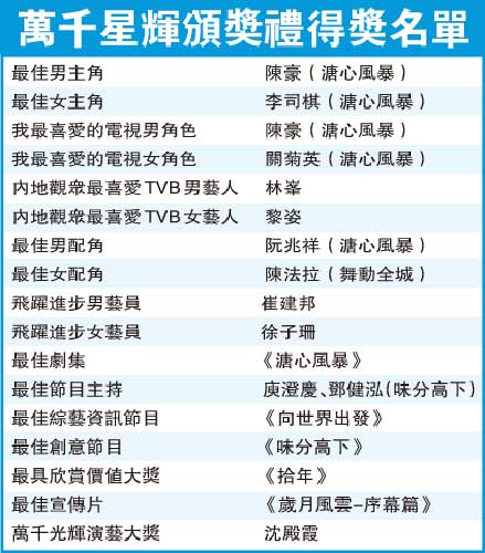無(wú)線《萬(wàn)千星輝頒獎(jiǎng)禮2007》得獎(jiǎng)名單