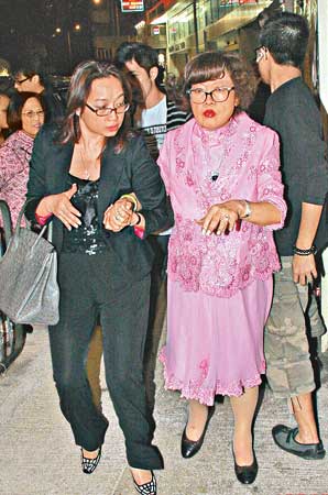 據(jù)香港媒體報道,前晚肥姐出席頒獎禮發(fā)表“撐下去”宣言后,于晚上約11時抵達尖沙嘴富瑤海鮮酒家消夜慶功,原來肥姐愛女鄭欣宜、好友狄波拉、胡須Kong、李琳琳和張徹太太等一早已在食肆等候。肥姐在一女性友人攙扶下走進食肆,即獲一眾好友拍手歡呼,為肥姐獲獎及堅強表現(xiàn)喝采。