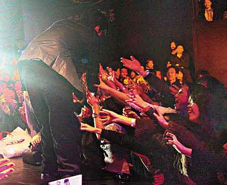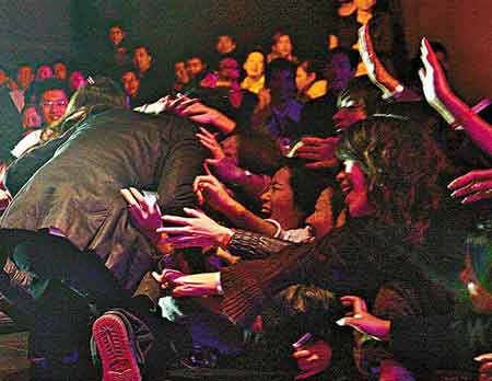中新網(wǎng)12月14日電 劉德華早前在內(nèi)地演出時為歌迷跳下臺,王力宏日前在上海表演時卻差點被歌迷扯下臺,險象環(huán)生。