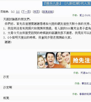 過去數(shù)日,被稱為“奇拿”的發(fā)相神秘人先后兩度以突襲式在網(wǎng)上發(fā)布逾百張從未曝光裸照,引來大批網(wǎng)民通宵留守電腦前等候最新消息。前晚,有網(wǎng)友在內(nèi)地論壇發(fā)布一條預(yù)告(見上圖),稱11日阿嬌復(fù)出時將在網(wǎng)上同步發(fā)送阿嬌與陳冠希的一段性愛片段,任由網(wǎng)友觀賞。