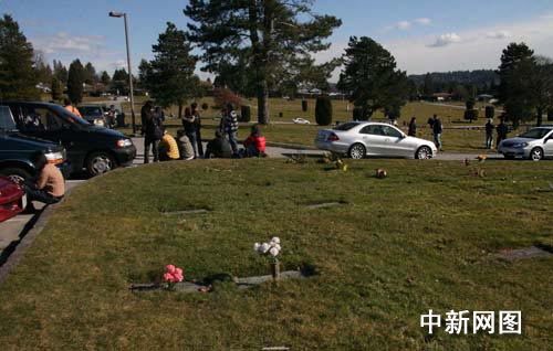 一批記者獲知鄭欣宜朋友的住處,又立刻驅(qū)車前往。而另外一些記者則繼續(xù)在墓園打“持久戰(zhàn)”,不等來鄭欣宜誓不罷休。記者們集中在殯儀館對(duì)面的停車區(qū),不是手持長短鏡頭,就是拿著麥克風(fēng),聲勢(shì)也算浩大。館內(nèi)中午時(shí)分正在舉行另一場悼念儀式,一些當(dāng)?shù)厝藖韥硗加煤闷娴难凵穸⒅奶帍埻挠浾邆,不知道發(fā)生了什么事。