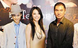 上圖為《時(shí)尚先生》主演張靜、孔維(中)、方中信出席該片廣州宣傳活動(dòng)。