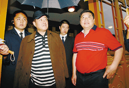 沉穩(wěn)的王義夫不時(shí)伸出手指指點(diǎn)點(diǎn),大男孩朱啟南也是一臉輕松,美女杜麗更是笑靨如花……見(jiàn)慣了幾位射擊世界冠軍在電視中嚴(yán)肅的模樣,上述場(chǎng)景很容易把人感染——位于棋盤(pán)山風(fēng)景區(qū)的關(guān)東影視城,昨日迎來(lái)了剛剛從國(guó)際射聯(lián)世界杯(步手槍)意大利站載譽(yù)歸來(lái)的中國(guó)步手槍射擊隊(duì)。而此次行程的東道主,則是王義夫20年的故交——趙本山。本山此次關(guān)東影視城之行還有另一個(gè)目的:為即將于下月底開(kāi)拍的《關(guān)東大先生》(原名《老北市》)選景,因此在老朋友王義夫和其“弟子”們面前盡情放松的本山,轉(zhuǎn)身與影視城工作人員等人交流時(shí)便換了一副嚴(yán)肅的面孔,有趣的對(duì)比成為一景。