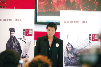 繼公布主演人選后,高希希版《三國演義》昨日在上海電視節(jié)揭開第二道面紗———人物與兵器造型。幾位主演———“諸葛孔明”陸毅、“劉備”于和偉、“貂蟬”陳好、“孫尚香”林心如集體亮相。導(dǎo)演高希希還搞了個噱頭,現(xiàn)場宣布該劇的第五位主演是扮演“趙云”的沙溢。