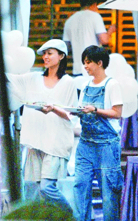 阿妹(右)昨天的服裝只及格一半,左為范瑋琪。