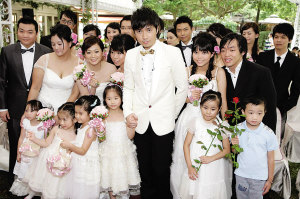 古巨基帶領(lǐng)10對新人一起走過紅毯時,也邀請了一位6歲的小女孩擔(dān)任自己的女伴。被浪漫婚禮氣氛打動的古巨基感慨地說:“一直很想結(jié)婚。『芟蛲业母杏X,但可惜一直沒有遇到另一半的緣分!鄙磉呥@位6歲的小女伴,私底下透露說很喜歡古巨基哥哥,但是當(dāng)古巨基在大家面前向她“求婚”:“我等你12年,你嫁給我好嗎?”小女孩卻害羞地多次推開古巨基的麥克風(fēng),斬釘截鐵地說:“不要!”令古巨基頗為尷尬。(記者柳治)