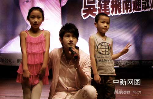 在歌友會(huì)上吳建飛演唱了《偏偏愛(ài)上你》、《你離開(kāi)以后》等歌曲,還演唱了自己作詞,潘瑋柏譜曲的《手拉手》。接著又與幸運(yùn)歌迷大玩心心相印和夾乒乓球等游戲,引發(fā)現(xiàn)場(chǎng)歌迷連連尖叫。歌迷代表還貼心的送上風(fēng)箏,祝偶像一飛沖天,唱片大賣(mài)。最讓吳建飛驚喜的是現(xiàn)場(chǎng)來(lái)了2位年僅5歲的鐵桿小粉絲,居然都可以完整的演唱完吳建飛的新歌。在被問(wèn)及七夕將至有何約會(huì)時(shí),害羞的吳建飛漲紅了臉,坦言現(xiàn)忙于工作無(wú)暇去好好經(jīng)營(yíng)一段感情。反而比較期待第二天的奧運(yùn)會(huì)開(kāi)幕式。說(shuō)起心目中女友的標(biāo)準(zhǔn),吳建飛表示兩個(gè)人在一起舒服就好了,但是她要顧家、體貼、溫柔,最重要是要孝順父母。