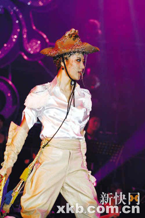 閃亮牛仔裝造型,以絲感覺面料為中性造型增添女人味。閃亮牛仔帽,復(fù)古袖子,飄逸馬褲,流蘇腰帶以及褶皺長手套,都是這個(gè)造型值得細(xì)細(xì)品味的潮流細(xì)節(jié)。