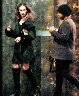 記者在外繼續(xù)等候,大約6點,Maggie Q的助理出門坐車離開。晚上10點左右,助理返回,過了一會Maggie Q和一位年輕的黑人男士出現(xiàn)在公寓大堂,Maggie Q精心化了妝,穿著黑色超短裙和皮靴,亭亭玉立但眼神冷酷,很有點女殺手的感覺,不知是否還沉浸在角色的情境中(Maggie Q在《狼災記》中扮演狼女)。跟在Maggie Q身后的那位黑人男士看上去大約20多歲,穿著一件深色西服和黑T恤,相貌樸實溫和,邊走邊擺弄手機。