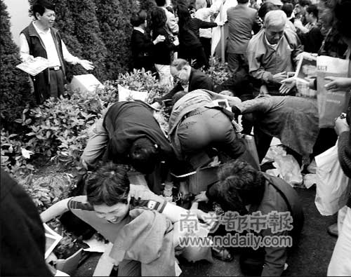 更有甚者,還有小偷來到混亂的現(xiàn)場企圖混水摸魚,F(xiàn)場記者說,本來打算去拍社會新聞的一家報社攝影記者,剛到現(xiàn)場就變成了社會新聞的主角!八チ艘粋人,說是偷相機的,二人扭打著從外面進來,后續(xù)沒看到,反正警察也處理了……而這件事情教育所有的記者,把包拉到自己看得見的范圍……”