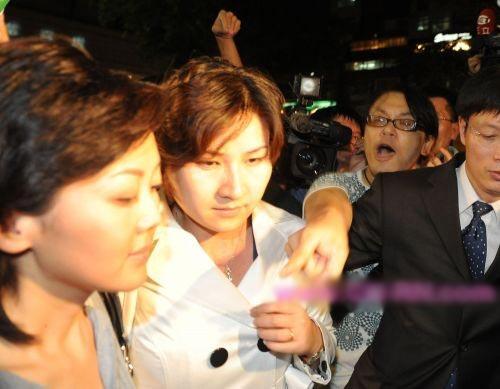 吳伯雄5日晚在晶華酒店宴請(qǐng)陳云林,“嗆聲”民眾包圍飯店數(shù)度沖撞,還圍堵央視主播柴璐(左一)等媒體人員。