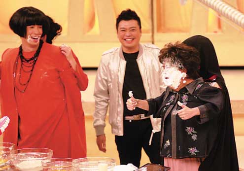 “荷媽”李司棋、“紅姨”米雪、“JO飽”夏雨、“SA姨”關(guān)菊英“冰釋前嫌”,一起為新餅店招募新員工,結(jié)果引來了曾志偉、陳豪等搗亂分子,曾志偉豪不留情地對他們大扔蛋糕,夏雨和關(guān)菊英都不幸“中招”,滿臉奶油,雖然狼狽,但也很“搶鏡”。