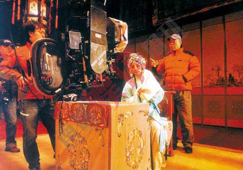 陳凱歌在拍攝現(xiàn)場(chǎng)說戲