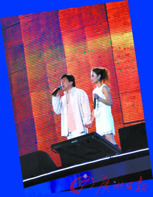 成龍與年輕女歌手拖手演唱。