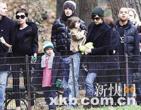 11月29日,繼感恩節(jié)貝克漢姆和湯姆·克魯斯兩家人共游紐約城之后,四名明星父母帶著他們的全部?jī)号⒀b出行,再一次讓紐約的狗仔們忙個(gè)不停。