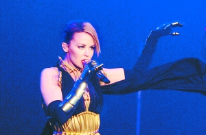 昨晚,凱莉·米洛的演唱會(huì)制作水準(zhǔn)要遜色于她的上一次巡演。那次巡演正值她人氣的最高值,現(xiàn)場(chǎng)更酷、更炫。而昨晚,舞臺(tái)顯得十分簡(jiǎn)單,燈光也沒(méi)有太花哨,大部分效果來(lái)自強(qiáng)大的音響以及巨大LED上呈現(xiàn)的電子三維畫(huà)面的沖擊力,這兩樣對(duì)于電子舞演出是最為重要的。