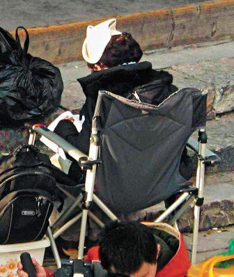 鏡頭后的伊能靜獨(dú)坐一角看劇本,刻意背對(duì)人群。