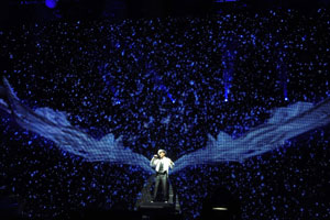 華仔昨晚除了載歌載舞,間中還穿插魔術(shù)秀、音樂(lè)劇等,其中音樂(lè)劇環(huán)節(jié),他就找來(lái)2位辣妹dancers共舞,左擁右抱,又貼身熱舞,又緊緊抱在一起;魔術(shù)秀環(huán)節(jié),還認(rèn)女助手為“女朋友”,羨煞現(xiàn)場(chǎng)所有女歌迷!